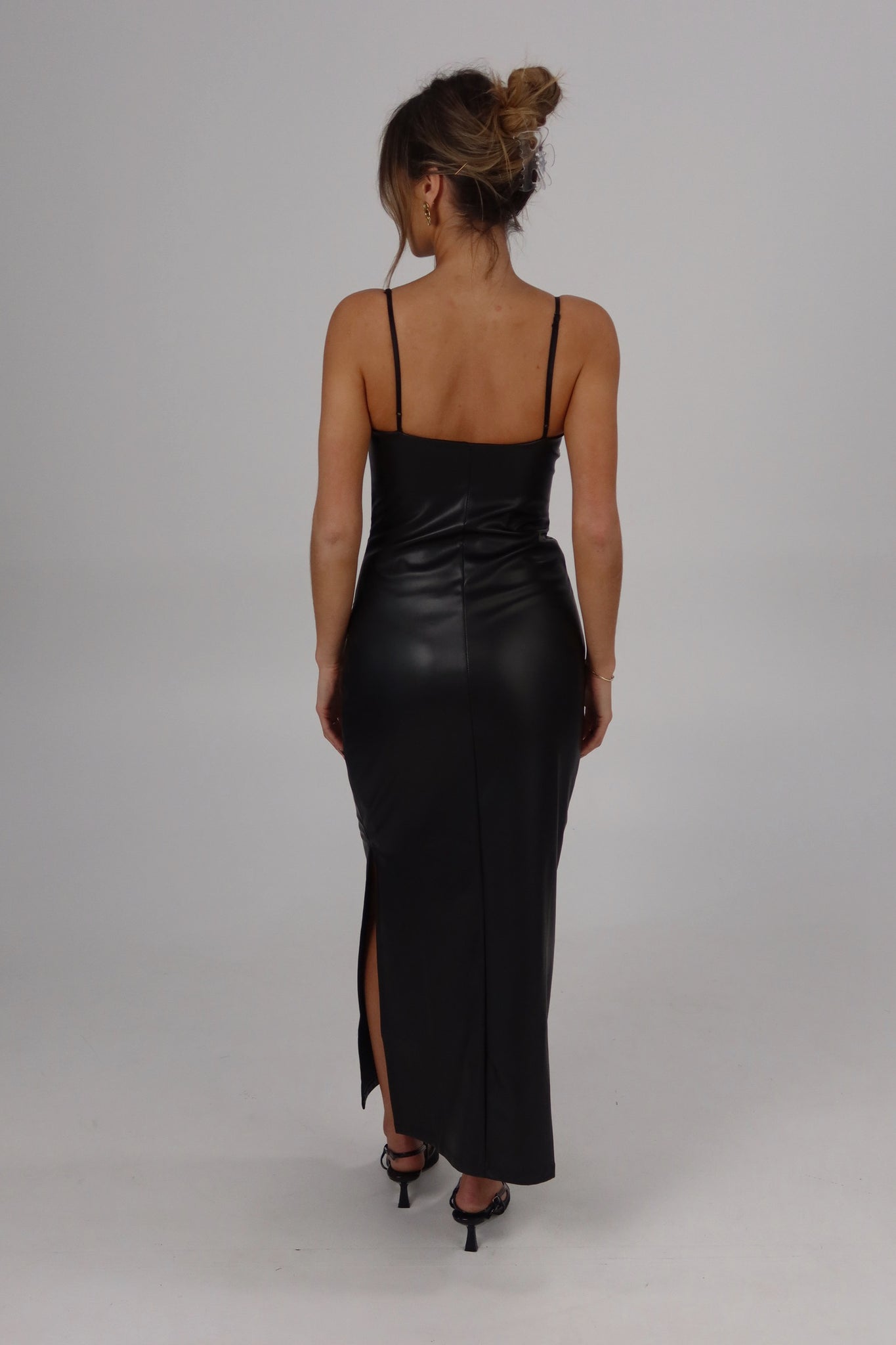 Stella Luxe Backless Vegan Leather Maxi in Black