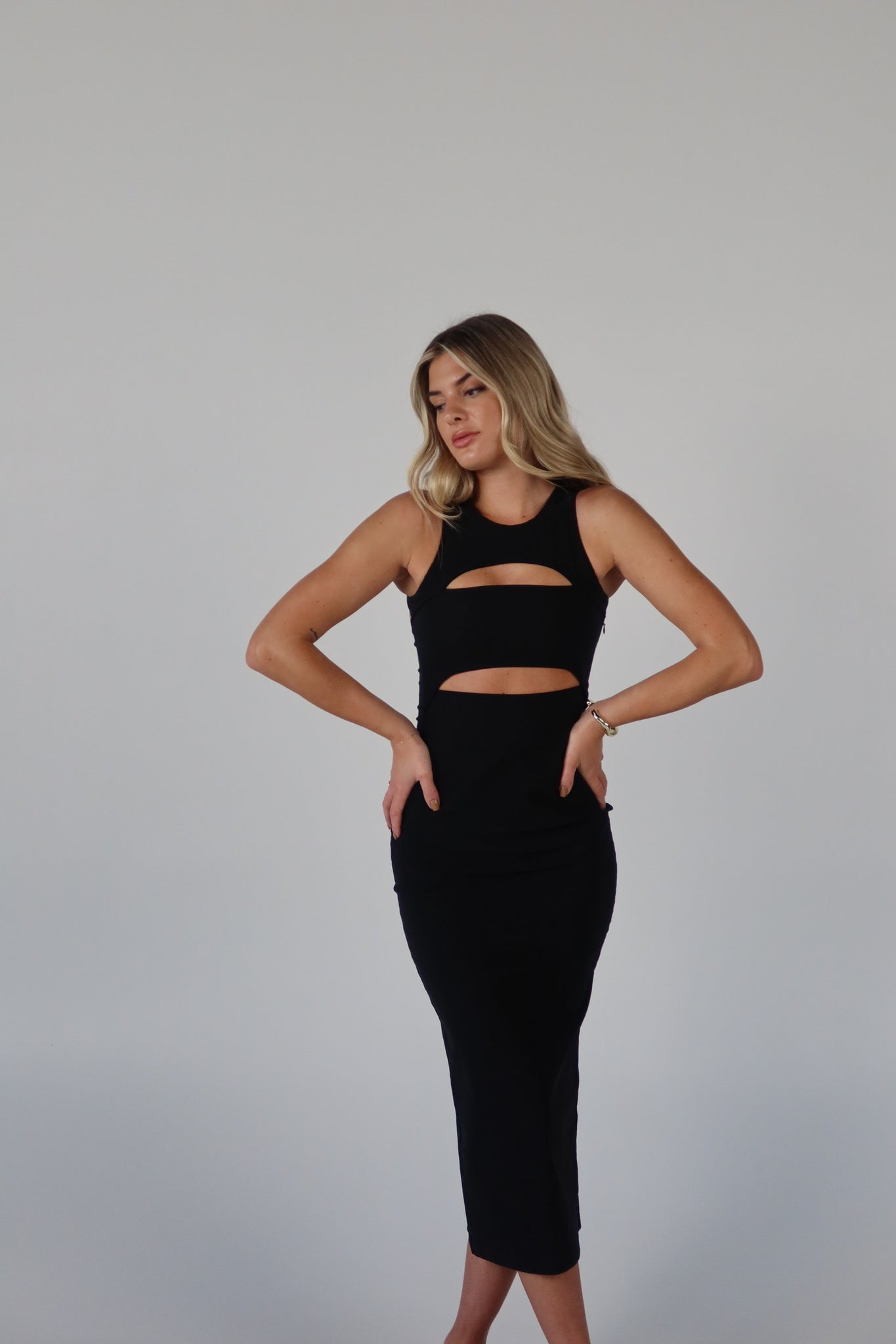 Blair Cut-Out Midi Dress in Black