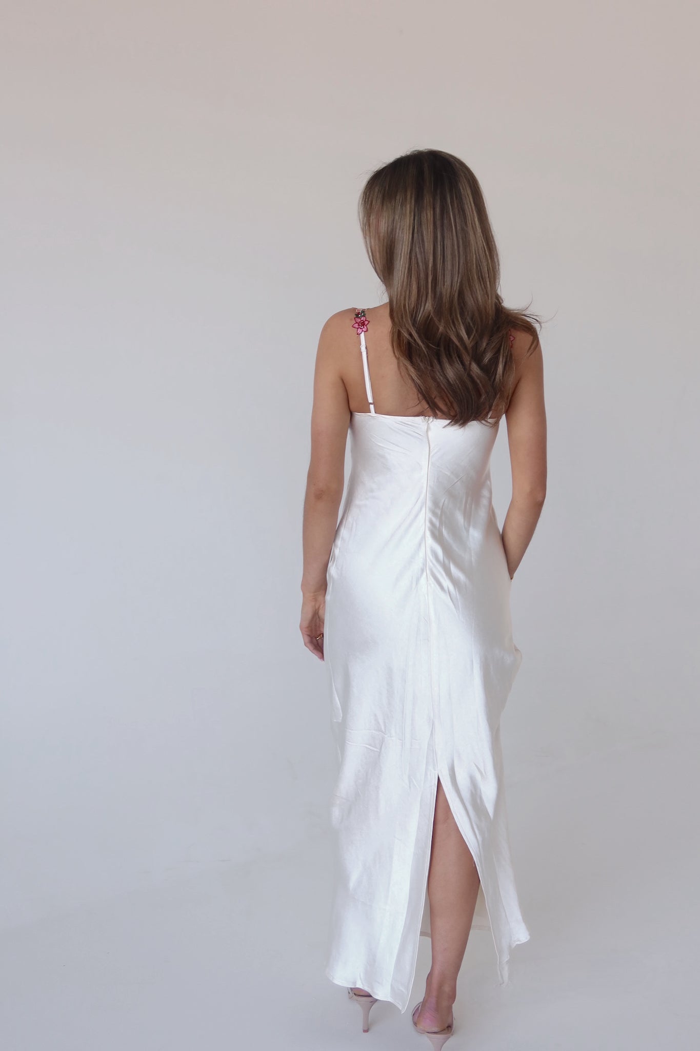 Naomi Floral Hem Silk Maxi Dress In Oyster