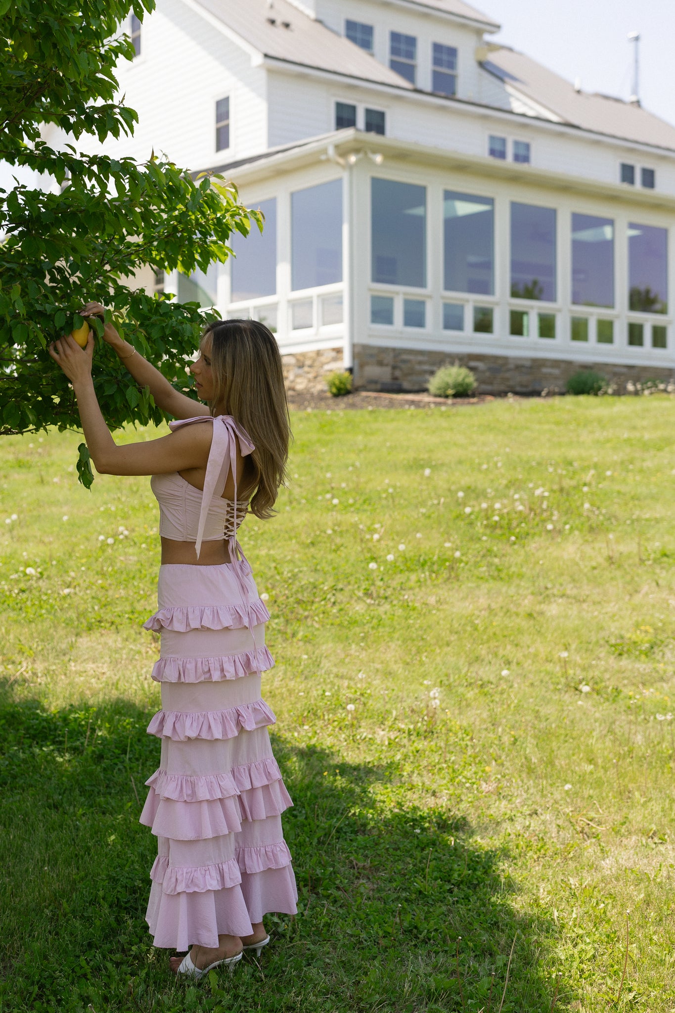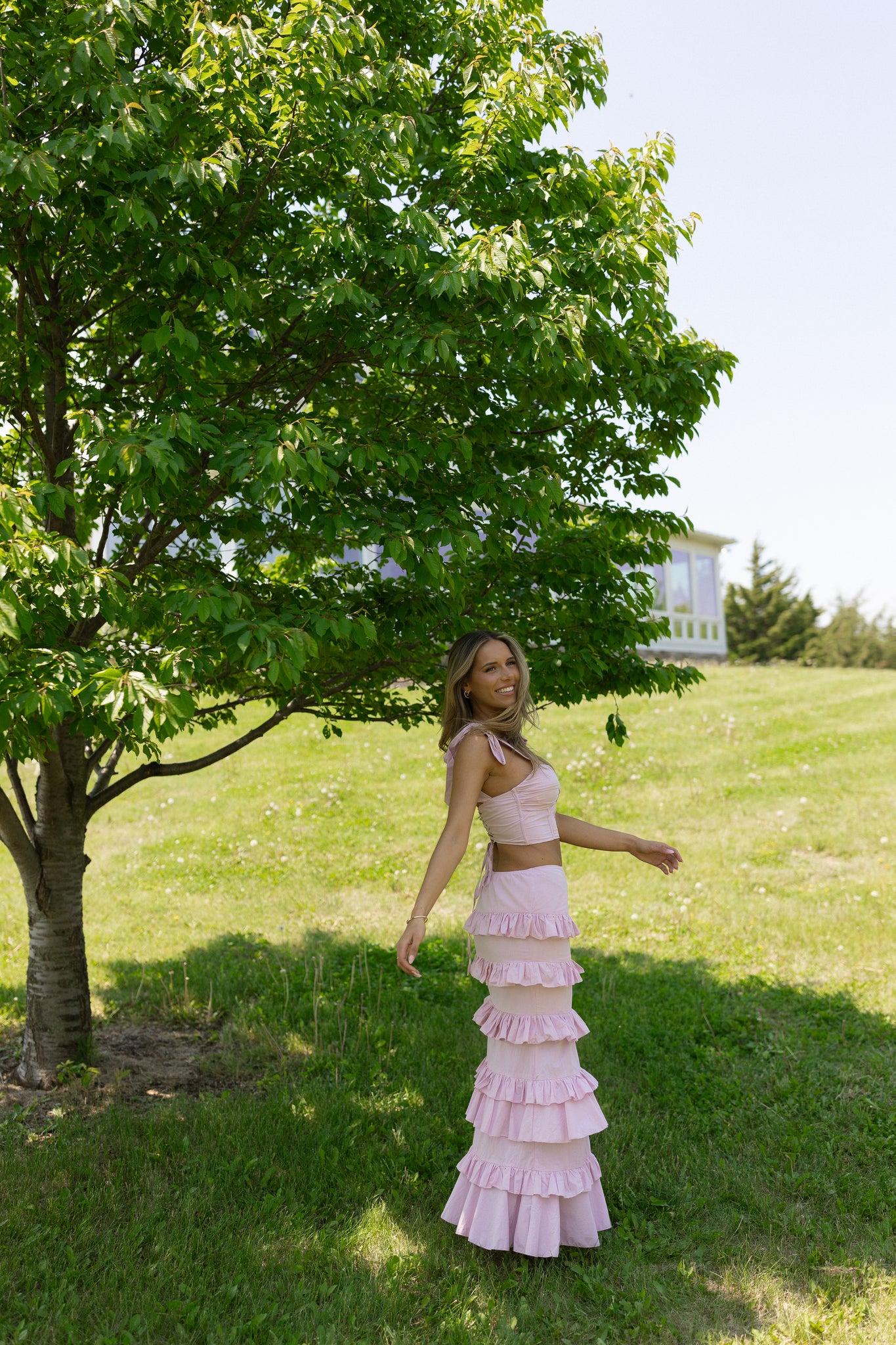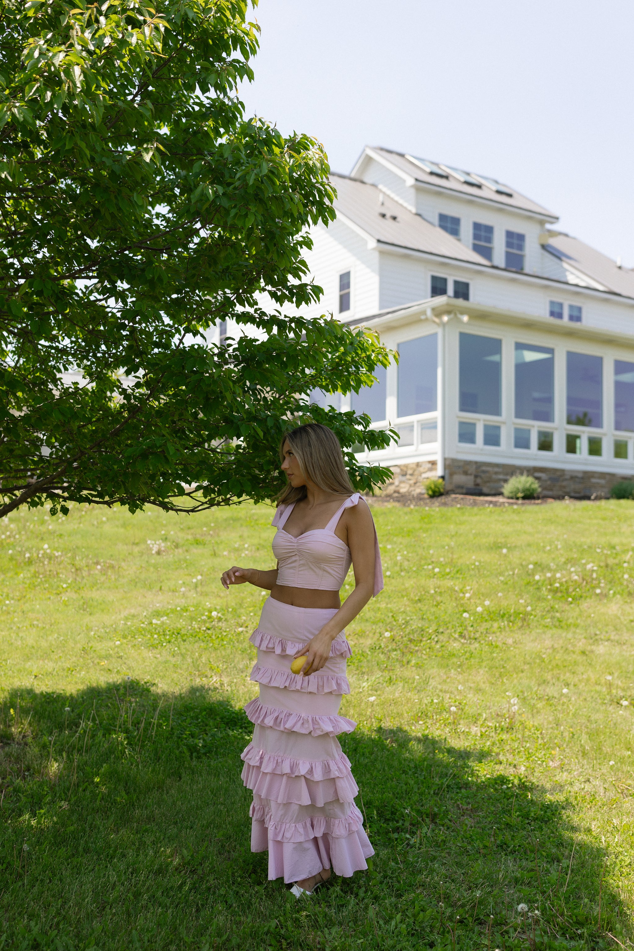 Maeve Crop Top And Ruffle Midi Skirt Set