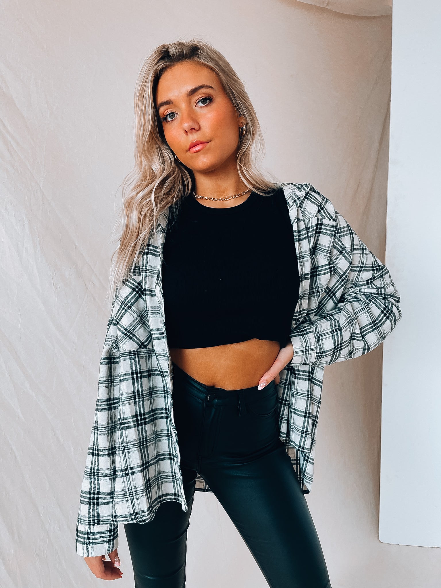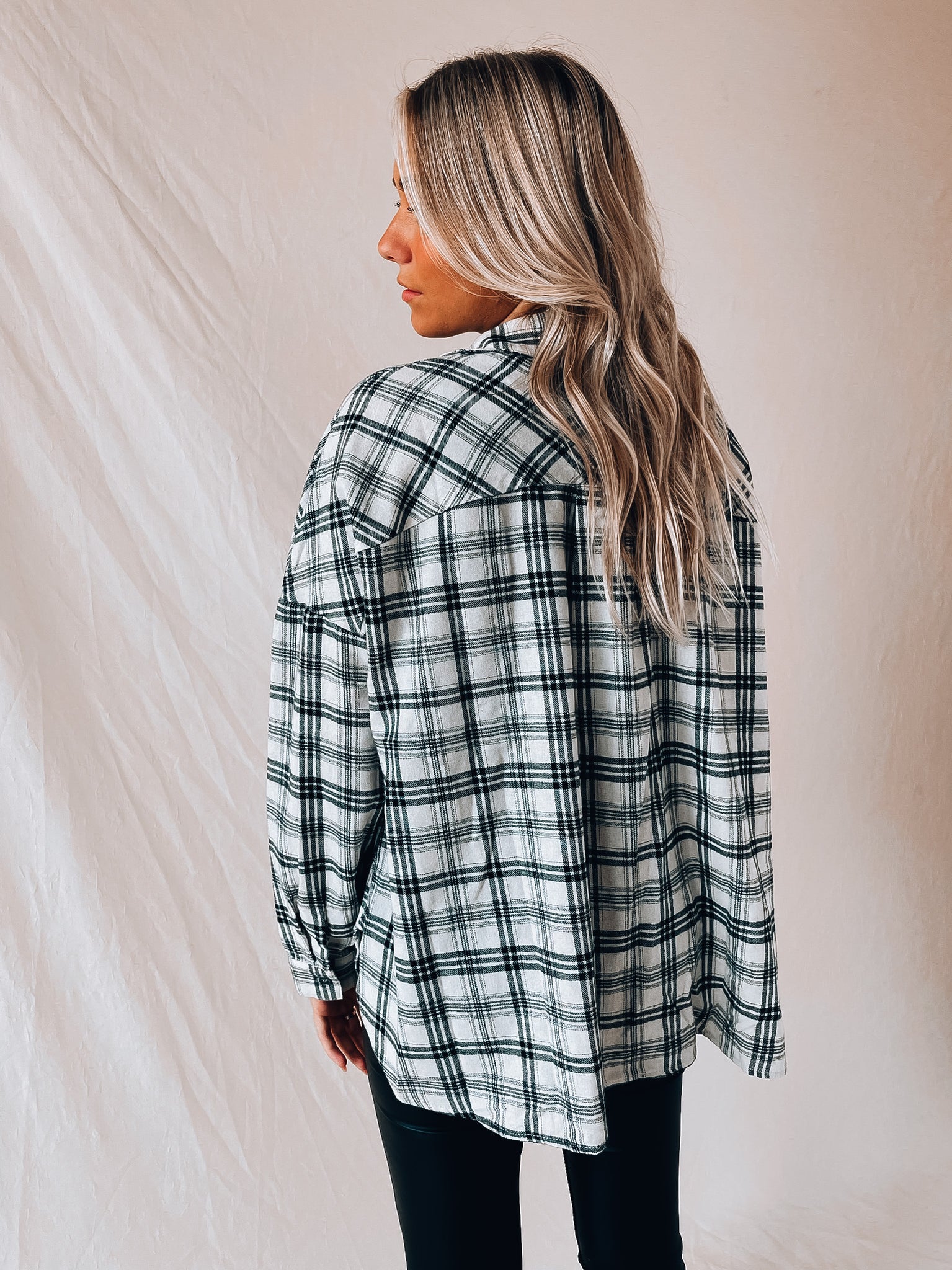 - Features: Overpeice, front pockets, button front closure, collared, relaxed fit silhouette