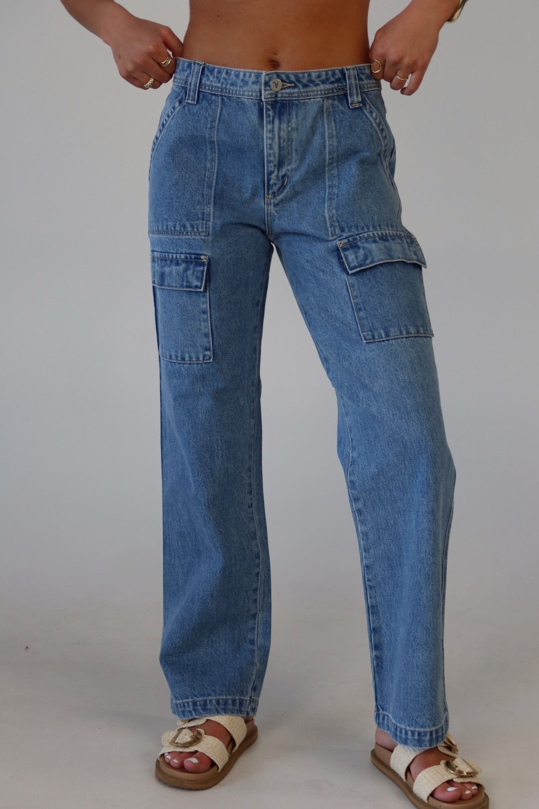 ABRAND : 99 Baggy Cargo Tianna In Mid Vintage Blue